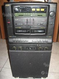 Vendo karaoke rack 300 marca CGM monoblocco in legno con casse incorporate , doppia cassetta , radio , canali d'uscita audio e d'ingresso segnale audio/CD e microfoni(non in dotazione) perfettamente funzionante.