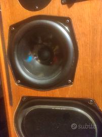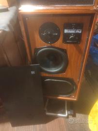 Perfette, immaccolate legni e altoparlanti. Originali in tutto , con i loro stand dedicati inglesi ( regolabili nel tilting con altezza dal pavimento corretta). Chi le conosce sa di cosa parlo. Chi non le conosce deve solo ascoltarle dieci minuti : impossibile non innamorarsene. Sono le "sorellone" delle famose LS3/5 ( BBC monitor). Stessa perfezione tonale, ma con la capacitá di "scendere" fino a 30 Hz ( grazie al radiatore passivo unito al B200) I tweeters? Due mitici T27 : what else? Gradito ascolto/prova e ritiro di persona. Telaietti e telini parapolvere nuovi.