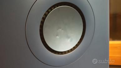 Vendo per eccesso di elettroniche. Per i difetti evidenziati in foto, che non influenzano minimamente la qualità del suono, dispongo del ricambio originale ancora impacchettato, inviato direttamente da kef UK. Quindi oltre alle casse consegno una coppia di woofer (il solo ricambio si aggira sui 500 euro). Tolta la piccola ammaccatura su woofer, le casse sono perfette. Disponibile ad ascolto e ritiro presso la mia abitazione. Eventuale spedizione è a carico e responsabilità dell'acquirente.