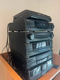Piatto, amplificatore, sintonizzatore, lettore cd e lettore cassette autoreverse doppio, con casse da 80 W. Con telecomando. Perfettamente funzionante.
