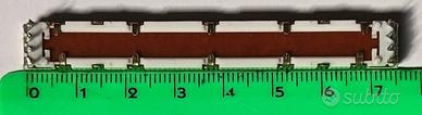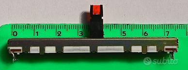 Kenwood GE-1100 Slider 100kohm 75mm con fermo centrale e led per ricambio. Rarissimo potenziometro originale proveniente da un Kenwood GE-1100. Questi potenziometri non vengono più prodotti dalla ALPS e quindi non sono piu’ in commercio. Il fermo centrale e’ fondamentale per il funzionamento nell’equalizzatore GE-1100 Kenwood. Il potenziometro e’ usato ma e’ stato testato: i contatti striscianti interni, la resistenza e le piste per alimentazione led (interne) sono efficienti pertanto lo potrete sostituire con tranquillita’ nel vostro Kenwood GE-1100. Il service manual indica la sigla R13-5054-08 (introvabile). Ho la possibilita’ di procurare altri Slider 100kohm 75mm con fermo centrale e led. Contattatemi per informazioni, difficolta’ e/o per riparazione. I pezzi potrebbero essere compatibili con altri dispositivi . CARATTERISTCHE TECNICHE PRINCIPALI: •Resistenza 100 Kohm •Tolleranza: +/- 20% •Potenza nominale: 200mW (1/5 W) •Lunghezza: 75mm •Larghezza: 9mm •Corsa: 60mm (reali 67mm) •Tipo: potenziometro slide con led rosso •Altezza cursore: 15mm •Altezza totale (corpo + cursore): 21mm •Montaggio: PCS •Terminazione: PC Pin Possibile spedizione. Spese con Poste Italiane a carico dell'acquirente.