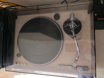 vendo Kenwood KD-550, giradischi vintage con braccio originale perfettamente funzionante, pulito e lubrificato gruppo motore/rotazione. Giradischi col leggendario plinto in marmo resinato brevettato da Kenwood, per una precisione e messa a fuoco che ancora oggi è di riferimento. Presente cappa originale in buone condizioni, dotato di testina Stanton 500 V2, documentazione originale.