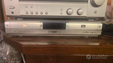 Vendo Sintoamplificatore KENWOOD KRF-V5580D Completo di 5 casse + Subwoofer e sempre fermo e come nuovo ! anche Coppia di staffe per casse acustiche universale da terra +hitachi DVD player CD recorder DV-W1E... come nuovo mai usato registratore audio CD-R. Questa configurazione unica offre un notevole risparmio di spazio, poiché entrambi i dispositivi possono essere inseriti nella stessa unità, creando un design davvero non convenzionale. Oltre a riprodurre film con un'eccellente qualità delle immagini, consente anche di ascoltare CD audio e di copiare CD-R o RW audio (esclusivamente) dall'unità DVD al registratore. Novità del 2000, questo lettore DVD è elegante e dotato del sistema di navigazione Disc di Hitachi. NON PERDI TEMPO ACCETTO OFFERTE.... Unità laser DVD 2x Riproduzione nelle seguenti modalità: DVD / VCD / CD / CD-R / CD-RW Doppia unità (DVD / CD-R / RW) Sistema di decodifica Dolby Digital a 5.1 canali Dolby Digital / MPEG Multi-Channel / DTS Digital Out integrato Sistema audio virtuale che fornisce tutto il suono Sistema di navigazione del disco Velocità di ricerca 120x Installazione Sistema di ricerca fluida Funzione zoom selezionabile 2x, 4x Area video analogica / Uscita video / Uscita digitale coassiale / Uscita SCART (con RGB) / Audio a 5.1 canali Opzione cuffie per un facile ascolto Opzione salvaschermo Opzioni di più lingue OSD disponibili Dimmer automatico Doppia velocità di copia audio Copia audio di dischi, titoli e programmi Duplicazione CD-text Sincronizzazione automatica e controllo manuale Livello di registrazione automatico e regolazione manuale