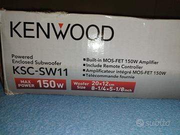 Subwoofer amplificato, Potenza di picco 150Watts, il più piccolo subwoofer amplificato del mondo, Body in alluminio pressofuso, Suono senza distorsioni, RCA + speaker level input. Colore nero.
