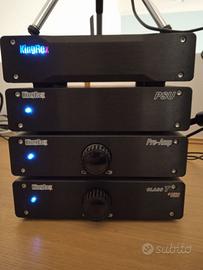 Gioiellino di casa Kingrex Convertitore DAC. È il primo modulo dall'alto in foto col logo Kingrex blu e rosso. Ampiamente recensito in rete.