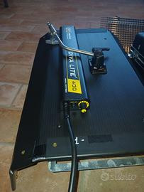Privato vende diva-lite 400 kit usato pochissime volte ( pari al nuovo ). Valigia - diva 400 con porta gelatina - louver silver - lollipop 16mm con spinotto. Possibilita' switch 2 o 4 lampade. Dimmer manuale su faro. Diffusore luce. Lo cedo completo di 4 lampade luce calda e 4 luce fredda.