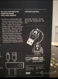 Kit Capitan America nuovo, mai usato, nella sua confezione originale, composto da: cuffie, caricabatteria da auto, cavo USB e auricolari. Gift box set edizione limitata