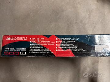 •🔊 Amplificatore Soundstream Tarantula TX 2.500 (2 canali): affidabile e potente, ideale per pilotare subwoofer, pari al nuovo.