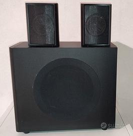 Kit casse acustiche (senza amplificatore) in ottime condizioni, composto da 4 casse e 1 subwoofer da 15W RMS di potenza ciascuna