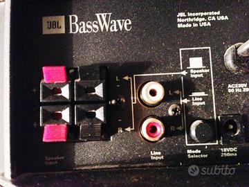 N. 1 Subwoofer JBL Base Wave , in ottime condizioni, AmplifierPower 100 Watts, ImputImpedance 48 Kilo OHM, FrequencyResponse 40 Hz - 120 Hz (3 Db), dimensioni 76 x 26 x 21 cm.
