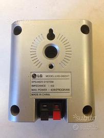 Vendo (non scambio, non permuto e non spedisco) kit casse per dolby surround marca LG con potenza massima di 280 watt, costituito da un subwoofer modello LHS-D6231W, potenza 80W con impedenza 8 ohm e cinque satelliti marca LG modello LHS-D6231T con potenza 40W ed impedenza 4 ohm.