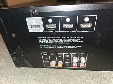 Vendo sintoamplificatore AV Yamaha HTR-2064, un modello a5.1 canaliprogettato per sistemi home theater. Fa parte della linea "Natural Sound" di Yamaha, nota per la riproduzione audio fedele e bilanciata. Caratteristiche Principali Audio Surround:Supporta una configurazione a5.1 canalicon una potenza nominale di circa100W per canale(6 ohm). Connettività Video:Dispone di3 ingressi e 1 uscita HDMIche supportano il pass-through3De la funzioneAudio Return Channel (ARC), semplificando il collegamento con la TV. Elaborazione Audio:Include tecnologie proprietarie comeCINEMA DSPcon 17 programmi diversi e ilCompressed Music Enhancerper migliorare la qualità dei file audio compressi. Decodifica Formati:Supporta formati surround standard comeDolby DigitaleDTS Digital Surround. Interfaccia Utente:Presenta i pulsantiSCENEper una selezione rapida delle impostazioni predefinite e una funzione di calibrazione automaticaYPAOper ottimizzare l'audio in base alla stanza. Specifiche Tecniche CaratteristicaDettaglioCanali5.1Potenza100W per canale (1kHz, 1ch pilotato, 6 ohm)Ingressi/Uscite HDMI3 in / 1 outIngressi Digitali2 Ottici, 2 CoassialiDimensioni435 x 151 x 315 mmPeso7,3 kg