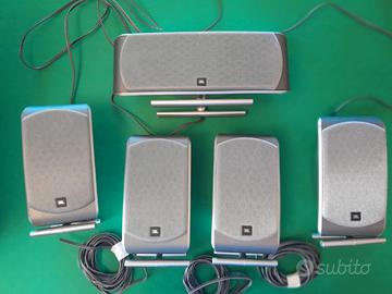 Vendo sistema completo Home Cinema JBL SCS 200.5 composto da 5 satelliti (modello SCS200) e subwoofer attivo da 100W (modello SUB 200/230) in ottime condizioni estetiche e funzionali. Sistema compatto ma con il classico suono JBL potente e definito, ideale per film, serie TV, musica e gaming. Completo di supporti originali per i satelliti, cavi anch'essi originali. Lo montate ed è pronto all’uso. Usato sempre con cura, ambiente non fumatori. Preferito scambio a mano a vista la delicatezza e il peso del subwoofer.