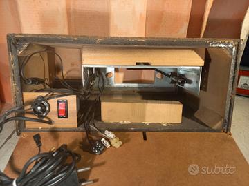 Tutto il necessario per ascoltare in casa qualsiasi autoradio o mangiacassette, sia Voxson che di altre marche. Completo di Alimentatore interno aa 220 volt stabilizzato e dei due altoparlanti in foto. Tutto perfettamente funzionante. Misure mobiletto: largo 38 - alto 17 - profondo 20. L'autoradio va inserita da dietro e si blocca e si blocca con due dadi sui potenziometri. Interasse tra le manopole 14 cm. Altoparlanti alti 24, larghi 14, profondi 13. Per informazioni chiama il 3487146039 (utente col 100 % di feedback positivi anche su altre piattaforme). Si astengano perditempo e ribassisti. Questa è una vendita tra privati, con esclusione di garanzia e con la formula "visto e piaciuto". L'oggetto è venduto "così com'è" e non è prevista nessuna restituzione.