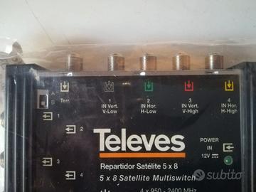 - Multiswitches 5x8 art. 713801 4 ingressi sat colorati per LNB + ingresso terrestre, 8 uscite miscelate