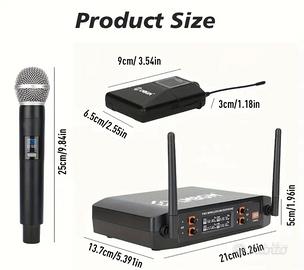 Sistema microfonico wireless professionale LBMGM, dotato di 2 manicotti e 2 trasmettitori (con 1 cuffia e 1 lavalier), ideale per cantare all'aperto, conferenze, piccole esibizioni ed altre scene. Regalo perfetto per Halloween