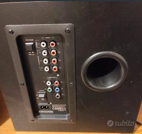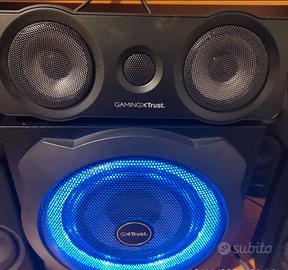 Kit 5.1 di altoparlanti della Trust mod. Gaming x trust 658 tytan con subwoofer illuminato a led blu e con potenza totale di 180watt. Colore nero. Con telecomando. Compatibile con PC, Xbox , PlayStation. Presente tutta la cavetteria.