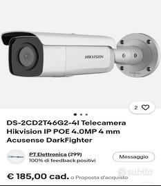 AFFARE PER MANCATA INSTALLAZIONE : N 6 TELECAMERE BULLET HIKVISION IP 4MPX MODELLO 4MPX DS-2CD2T46G2 ACUSENSE N 1 REGISTRATORE DVR HIKVISION IBRIDO 8 INGRESSI CON HARD DISK 1TB INTEGRATO MODELLO 7208HUH-M1/S N 1 SWITCH DI RETE MODELLO ELMO POE 8 INGRESSI (SW02 Switch industriale con 6 porte Megabit PoE + 2 porte Gigabit PoE + 1 porta Gigabit Uplink + 1 porta Gigabit Combo Uplink, max 120W) N 1 SWITCH POE VIDEOTECNOLOGIE 4 PORTE POE + porte Gigabit Uplink N 1 CIABATTA ELETTRICA COMPLETA 3 POSTI CON INTERRUTTORE 16A N 3 PATCH DI RETE UTP 1 METRO NON SPEDISCO NO PERDITEMPO SOLO SCAMBIO A MANO A BRESCIA, BERGAMO, MILANO