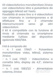 Kit videocitofonico monofamiliare 2Voice con videocitofono Miro e pulsantiera da appoggio Mikra2 ad 1 tasto.