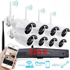 KIT WIRELESS 4CH 3MPX 175 EURO KIT WIRELESS 4CH 5MPX 220 EURO KIT WIRELESS 8CH 300 EURO KIT WIRELESS PTZ 4CH 210 EURO KIT WIRELESS PTZ 8CH 310 EURO KIT WIRELESS BULLET - Funziona senza bisogno di wifi o internet li diamo già configurate pronte all'uso - Ogni telecamera va collegata ad una presa elettrica poi loro si collegano al nvr a frequenza wireless - Sensore di movimento integrato ad ogni telecamera - Visione diurna a colori e notturna infrarossi - Telecamere adatte per interni ed esterni: IP66 - App per vedere con lo smartphone Android e Ios - Collegabile a qualsiasi monitor o televisore Caratteristiche Nuovo NVR 5mpx di massima qualità e affidabilità 4 CANALI IP 1080P (1920×1080) Sistema ONVIF Registrazione in Alta definizione 1080P (1920×1080) BITRATE VARIABILE Trasmissione in tempo reale Standard Menu Italiano e tante altre lingue . Possibilità di inviare e-mail di allarme Riconosce: offuscamento telecamera, taglio segnale, motion e sulla base di questi eventi permette specifici interventi come invio e-mail, recording. In caso di evento permette di inviare e-mail Riconosce eventi di Guasti come disco rotto, problemi di rete ed altri, avvisando via e-mail Operazioni da Remoto: Monitor, PTZ control, Playback, System setting, KIT WIRELESS PTZ - App Xmeye (la migliore applicazione) - Audio integrato - Funziona senza bisogno di wifi o internet li diamo già configurate pronte all'uso - Ogni telecamera va collegata ad una presa elettrica poi loro si collegano al nvr a frequenza wireless - Sensore di movimento integrato ad ogni telecamera - Visione diurna a colori e notturna infrarossi - Telecamere adatte per interni ed esterni: IP66 - App per vedere con lo smartphone Android e Ios - Collegabile a qualsiasi monitor o televisore