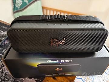 Vendesi per inutilizzo cassa Klipsch Detroit, altoparlante Bluetooth portatile in condizioni pari al nuovo (utilizzata occasionalmente 5/6 volte) Spedizione a carico dell’acquirente.