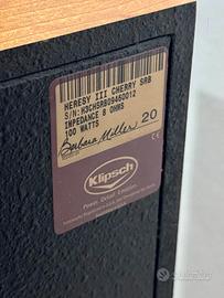 Bellissima coppia di diffusori Klipsch della serie "Heritage", trattasi delle HeresyIII, sistema con cassa chiusa, medi e acuti a tromba 99db di efficenza, pilotabili con amplificatori anche da 1 w.