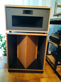 Altoparlanti originali Tweeter: a tromba Klipsch K-77 Midrange : a tromba K-55 Woofer : Woofer : Un altoparlante a bassa frequenza Klipsch 15″ K-43 Crossover ARG AUDIO Tutto revisionato e perfettamente funzionante. Disponibile per qualsiasi prova.