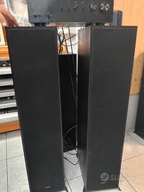 Driver e Costruzione Driver Alte Frequenze: Tweeter LTS (Linear Travel Suspension) in alluminio da 1" (2,54 cm), accoppiato a una tromba Tractrix® quadrata 90x90. Driver Basse Frequenze: Doppio Woofer IMG (Injection Molded Graphite) in rame filato da 8" (20,3 cm). Tipo di Cabinet: Bass-Reflex tramite porta Tractrix® posteriore. Materiale: MDF con finitura in vinile venato nero antigraffio. Ingressi: Morsetti placcati in oro (singoli). Dimensioni e Peso Altezza: 1093\text{ mm} Larghezza: 277\text{ mm} Profondità: 443\text{ mm} Peso: 24,5\text{ kg} (singolo diffusore) Caratteristiche Principali Tromba Tractrix® 90x90: Garantisce che l'energia delle alte frequenze sia rivolta direttamente all'ascoltatore, riducendo i riverberi artificiali causati dal suono che rimbalza sulle pareti. Tweeter LTS in Alluminio: Riduce al minimo la distorsione per prestazioni più dettagliate. Woofer in Rame IMG: Estremamente leggeri e rigidi, offrono una risposta a bassa frequenza rapida e con minima rottura del cono. Design Contemporaneo: Griglie magnetiche sottili e piedini angolati che conferiscono stabilità e un look moderno. Nota: Essendo diffusori con porta reflex posteriore, rendono al meglio se posizionati a una certa distanza dalla parete di fondo (almeno 30-50 cm) per evitare che i bassi risultino troppo enfatizzati o "gonfi".