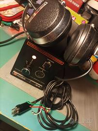 Sistema di ascolto in cuffia della Koss costituito da una unità centrale, da collegare alle uscite delle casse dell' amplificatore, e da una cuffia stereo elettrostatica, che si collega con suo spinotto alla sua unità. Dalla unità centrale si collegano anche le casse, dal morsetto posteriore. Un interruttore pilota la scelta tra ascolto in cuffia o alle casse. Perfettamente funzionante e mantenuto