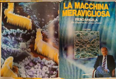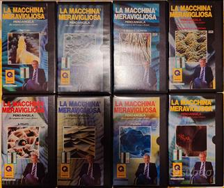 La macchina meravigliosa di Piero Angela. Questo oggetto è una collezione vintage di videocassette (VHS) del programma documentaristico "La macchina meravigliosa" di Piero Angela, dedicata alla scoperta del corpo umano. Composta da 8 puntate focalizzate su diversi organi come cuore, polmoni, fegato, ossa, occhio, orecchio, gusto e olfatto. Questo oggetto è una collezione di 8 videocassette VHS intitolata "La macchina meravigliosa" di Piero Angela, prodotta da De Agostini. Divulgazione scientifica sul funzionamento del corpo umano, originariamente trasmessa nel 1990. Contenuto: Ogni cassetta è dedicata a un organo o sistema specifico, inclusi cuore, polmoni, fegato, occhio e orecchio. La serie utilizza animazioni, filmati e fotografie realizzate con microscopio elettronico a scansione per spiegare l'anatomia e la fisiologia. Un lungo viaggio in 8 puntate alla scoperta del corpo umano, con Piero Angela che osserva da vicino il nostro organismo, soffermandosi ogni volta su un tema