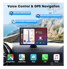 LAMTTO Carplay Wireless Schermo per Auto Portatile per A-pple CarPlay e Android Auto, 9 Pollici Autoradio Senza Fili Stereo Car Play con Bluetooth/Navigazione/Assistente Vocale/Mirror Link/FM/AUX