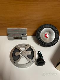 Vendo sistema di altoparlanti Lanzar OPTI6.1, prodotto nuovo, mai installato, completo e funzionante. ideale per chi cerca un suono di alta qualità per la propria auto. Potenza di picco: 400W (Woofer da 6.5 pollici) Frequenza di risposta: 55Hz - 6kHz Impedanza: 4 Ohm Crossover passivi a 2 vie con pendenza a 12dB