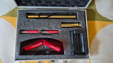 usato una sola volta per curiosità e rimesso nella sua conferione originale completo di 4 batterie 18650 più caricatore più varie forme da avvitare sulla punta laser...raggio d'azione 2 km e a distanza di un metro può anche bruciare plastica e cartone