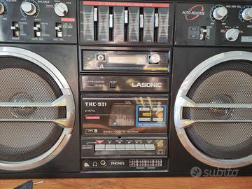In vendita il leggendario Lasonic TRC-931, uno dei boombox più iconici mai realizzati. Conosciuto per le sue dimensioni massicce (circa 65 cm di larghezza) e i suoi iconici woofer argento, è il pezzo definitivo per ogni collezionista di vintage audio o cultura Hip-Hop.