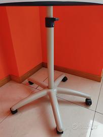 Lavagna magnetica a fogli mobili. Piede con rotelle. Dimensioni 68 x 97 cm più piede. Regolabile in altezza. Supporto per blocco regolabile – nella parte superiore della lavagna – sotto la copertura orientabile – ci sono ganci per appendere la carta. Magnetica per magneti e/o pennarelli non permanenti; a fogli mobili per pennarelli permanenti.