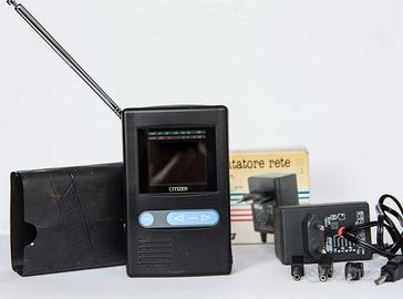 TELEVISORE LCD COLOR ANALOGICO portatile marca CITIZEN PA 422, completo di carica batteria, antenna, custodia e scatola originale . Oggetto da collezione.