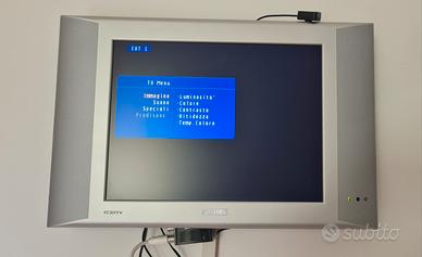 LCD TV 15" PHILIPS con mini decoder TELE System adatto al montaggio a parete o con appoggio sul piano. Vendesi causa inutilizzo, completo di telecomandi, manuale e cavo antenna..