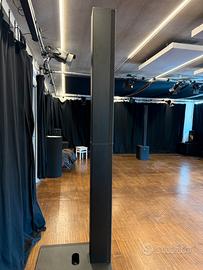 -Colonne acquistate ad ortobre 2025. -Vendibili anche silngolarmente ad 800 -Prezzo di listino 1300 euro. -Ricevuta di acquisto disponibile,quasi 3 anni di garanzia thomann. -Qualità audio eccellente,facili da montare e smontare,potentissime andhe all’aperto.Vendo per passaggio a sistema PA tradizionale Descrizione tecnica: Sistema compatto a colonna Plug and Play per Monitor e sistemi di sonorizzazione PA Potenza: 1030 W RMS, 2060 W di picco SPL massimo: 127 dB Risposta in frequenza: 37 - 20.000 Hz Angolo di dispersione (A x V): 120° x 30° Composto da: subwoofer da 12", 12 altoparlanti Full-Range da 3,5" e 2 tweeter da 1" Colonna cardioide per una dispersione controllata nelle frequenze medio-basse e medie Guida d'onda HF e connettori di fase ottimizzati BEM per una dispersione omogenea Design Bass-reflex ottimizzato per migliorare la risposta dei bassi e ridurre il rumore del flusso d'aria Da combinare insieme ad un secondo Subwoofer MAUI 28 G3 per un'estensione della gamma bassa o una configurazione con Subwoofer cardioide Nuovo DynX DSP (Gen.2) per una riproduzione senza distorsioni anche a volume massimo Streaming via Bluetooth 5.0 con codifica AAC Ingresso di linea XLR/jack combo Uscita XLR Sub e System Circuiti di protezione: cortocircuito, limitatore multibanda, corrente continua, protezione contro il surriscaldamento Riconoscimento automatico delle impostazioni per un funzionamento senza complicazioni Configurazione semplice e veloce senza supporti stativi Robusta cassa del subwoofer in betulla Multiplex con rivestimento in poliurea ad alta resistenza Colonne leggere in alluminio verniciato a polvere Dimensioni del Subwoofer (L x P x A): 370 x 472 x 527 mm Dimensioni del satellite (L x P x A): 103 x 135 x 1540 mm Peso del Subwoofer: 22,8 kg Peso del satellite: 12,6 kg Colore: nero