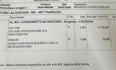 Convertitore venduto come usato, ma assolutamente nuovo Data fabbricazione Febbraio 2026 Scontrinato il 26/2/2026 22 mesi di garanzia residua Listino 2.670,00€ Imballo originale Preferisco consegna di persona