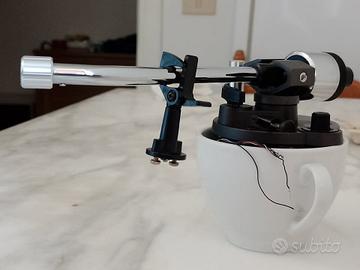 PS come vedete il telaio ha il perno rovesciato, è una soluzione adottata anche su giradischi di pregio (ad es Braun PS 500). Penso che un bravo tornitore possa essere in grado di replicare il contropiatto. Fornisco un ottimo braccio a S recuperato da un giradischi Sony, scelto perchè adatto geometricamente, DA MONTARE completo di wiring, visibile nelle foto A richiesta posso toglierlo con diminuzione del prezzo