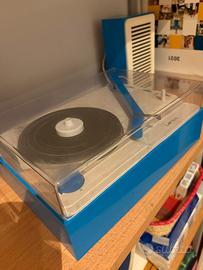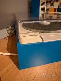 Giradischi con casse esterne. Oggetto raro nel bel colore azzurri e bianco. Ben funzionante Unico difetto la cappa con una rottura come da foto.