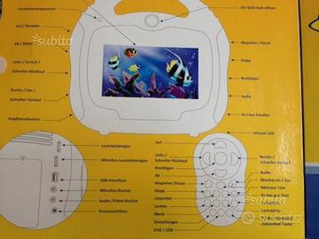 Vendesi causa inutilizzo lettore audio video portatile per bambini con telecomando ed alimentatore perfettamente funzionante, può essere alimentato anche a batterie. Possibilità di riprodurre file anche da pennino USB.