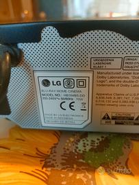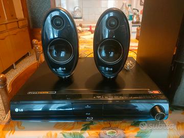 Vendo lettore blu ray LG con impianto home cinema. Lettore DVD con impianto subwoofer 150 watt e due speaker 75 watt l'uno. Perfettamente funzionante, vendo per inutilizzo. Modello esatto nelle foto.