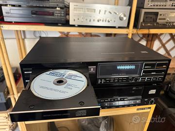 vintage di fascia alta introdotto intorno al 1984, noto per la sua robustezza e qualità sonora. Monta la celebre meccanica in pressofusione Philips CDM-1 con lente in vetro e utilizza un doppio convertitore DAC TDA1540P, offrendo un suono caldo e dettagliato a 14 bit con sovraccampionamento. oldstore oldstore +1 Caratteristiche Tecniche Principali: Meccanica di Lettura: Philips CDM-1 (in alluminio pressofuso). Convertitore D/A: 2 x TDA1540P (14 bit). Risposta in Frequenza: 20 Hz - 20 kHz.Marantz Rapporto Segnale/Rumore: 96 dB. Distorsione Armonica Totale (THD): 0,003%. Separazione dei Canali: 93 dB. Uscita di Linea: 2 V. Dimensioni: 420 x 92 x 300 mm. Peso: 7 - 8 kg (struttura in metallo). Giradischi Anno di Produzione: ~1984. oldstore oldstore +3 Caratteristiche Aggiuntive: casse Uscite: Analogiche RCA (nessuna uscita digitale nativa). Uscita Cuffia: Presente, con controllo del volume sul frontale. Jbl Costruzione: Costruzione robusta, spesso con finitura in metallo. Pioneer