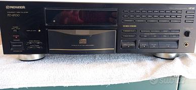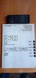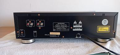 lettore CD Pioneer PD-8700 con telecomando apparecchio molto musicale, in particolare con le voci e gli strumenti a fiato piuttosto raro e ricercato per la sua qualità musicale perfettamente funzionante ed in buone condizioni estetiche caratteristiche: -Stable Platter Mechanism -direct linear conversion -1-bit PDM DAC -uscite analogiche fissa e variabile (che permette la connessione diretta ad un finale di potenza o ad un amplificatore sprovvisto di telecomando) -uscita cuffia con manopola del volume comandata da telecomando Specifications Frequency response: 2 Hz to 20 kHz +/- 0.5 dB Signal-to-noise ratio: 108 dB or higher (EIAJ) Dynamic range: 97 dB or higher (EIAJ) Channel separation: 102 dB Distortion factor: <0.0022% Coincident fluctuation: Measurement limit Number of channels: 2 channels (stereo) Power consumption: 18 W Dimensions: 420 x 135 x 274 mm (WxHxD) Weight: 5 kg