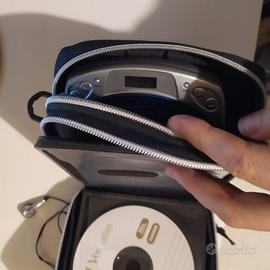 Lettore CD portatile "Lenoir", completo di auricolari originali, funziona a batteria. Vendo completo di borsetta con 3 tasche in cui conservare il lettore, i CD ed altro.