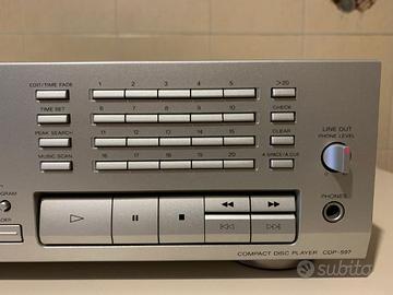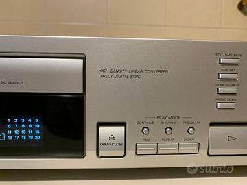 Primi anni '90.Senza telecomando.Ottime condizioni estetiche e di funzionamento.Usato pochissimo.Uscita per ascolto cuffie con volume separato.Funzioni shuffle,repeat e richiamo brani.È un apparecchio di buona qualità di gamma media.Imballaggio e spedizione professionale gestita da MBA Mail Boxes.