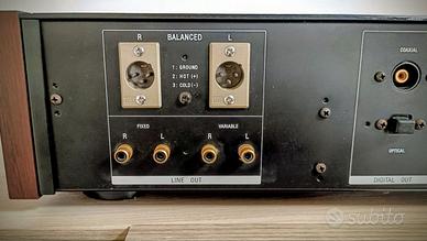 Un prodotto che ha fatto molto parlare di se quando e' uscito per contrastare la concorrenza Marantz. Un prodotto top di gamma degli anni novanta costruito senza compromessi, ben 17 kg di peso !!! con meccanica in lega di alluminio e telaio completamente ramato. Il massimo che si può trovare tra i lettori cd vintage usati.