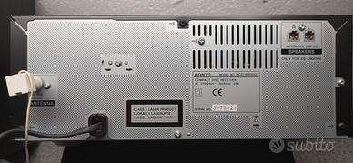 Sony CMT-MX500i Micro Hi-Fi Stereo Altoparlanti Lettore CD Dock ipod con telecomando. Misure: cassa larghezza 15 profondità 22 altezza 24. Corpo centrale : larghezza 31 profondità 27 altezza 12.
