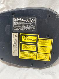 Lettore CD portatile Technics anni ‘90, alimentato a batterie AA o con trasformatore da 4.5v, con funzioni di ripetizione ed extra bassi (ci ho rimediato gli acufeni…) Trattato sempre bene, solo con musica jazz, fusion e funk.
